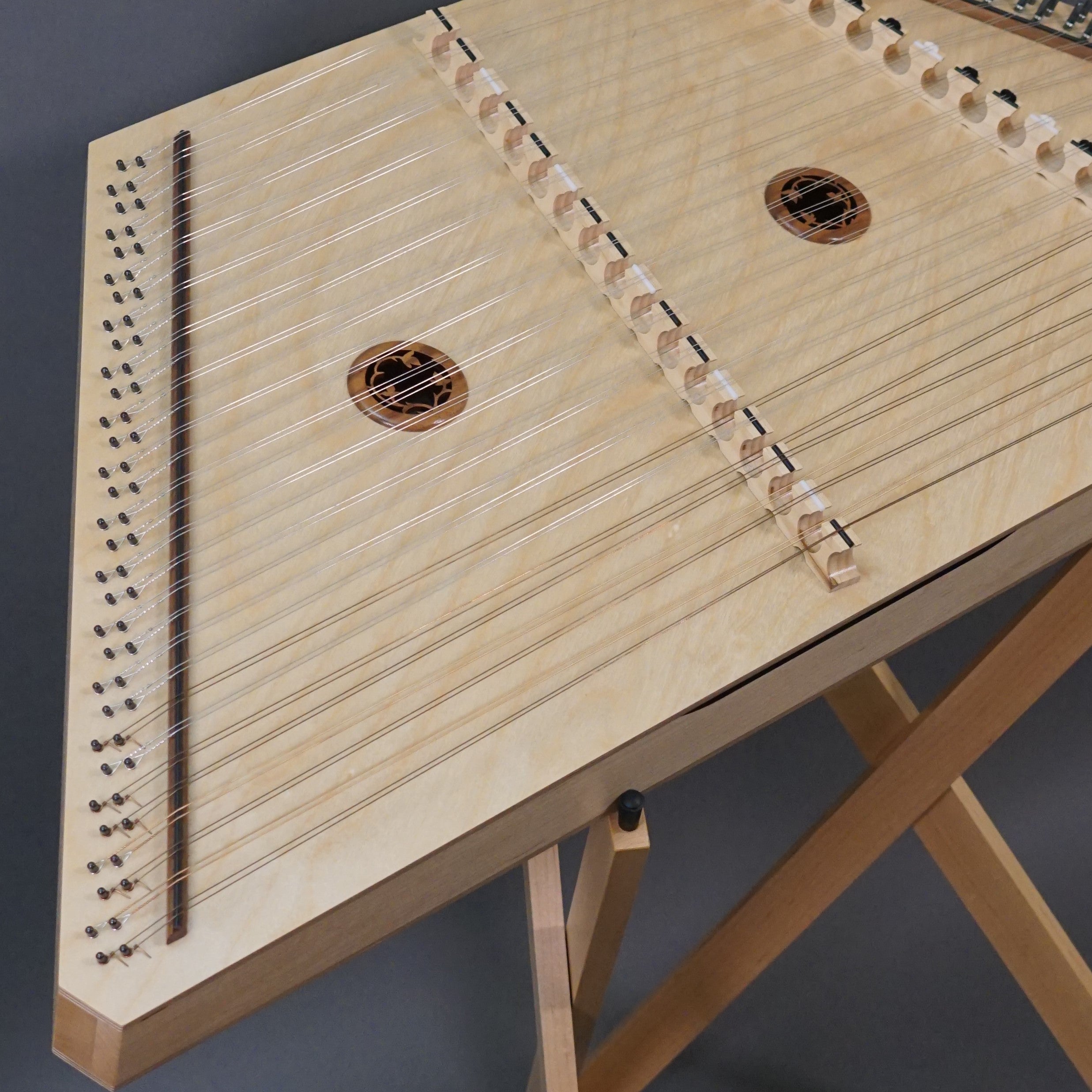 European birch, maple pin blocks, rails and bridges, overall range of 3 octaves, package includes cordura padded case and sit-down stand.
