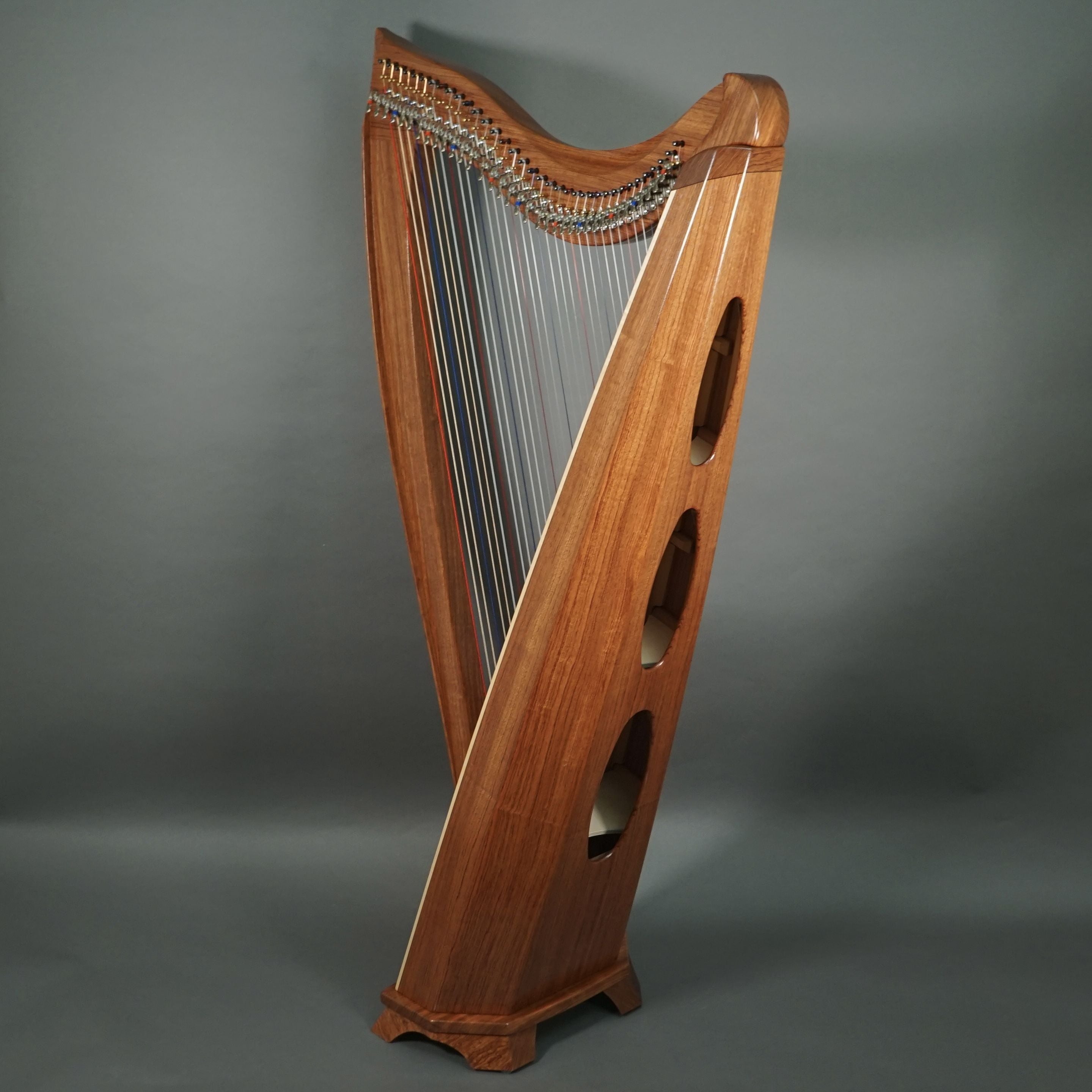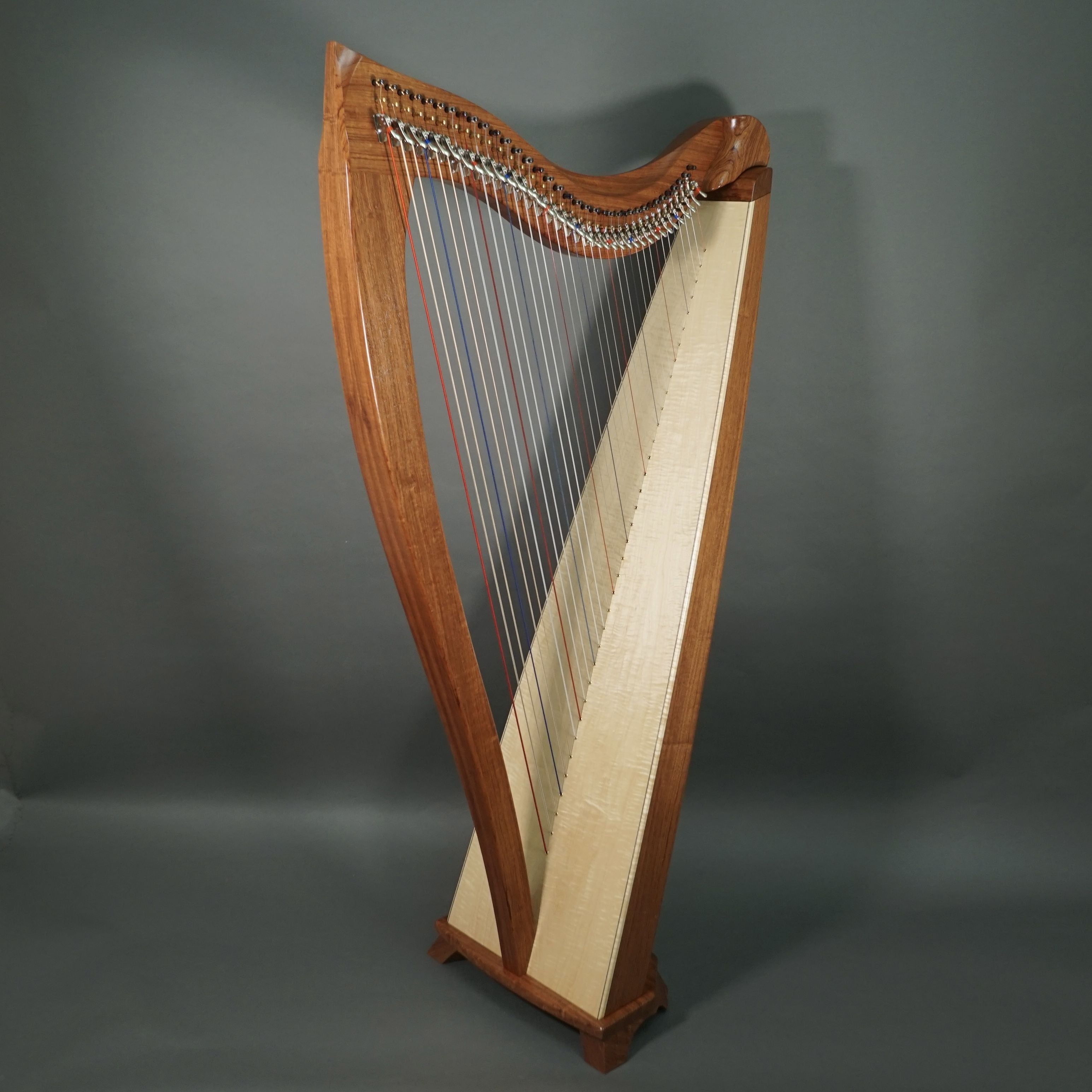 Includes case. Photos are representational; actual wood appearance can vary from harp to harp.