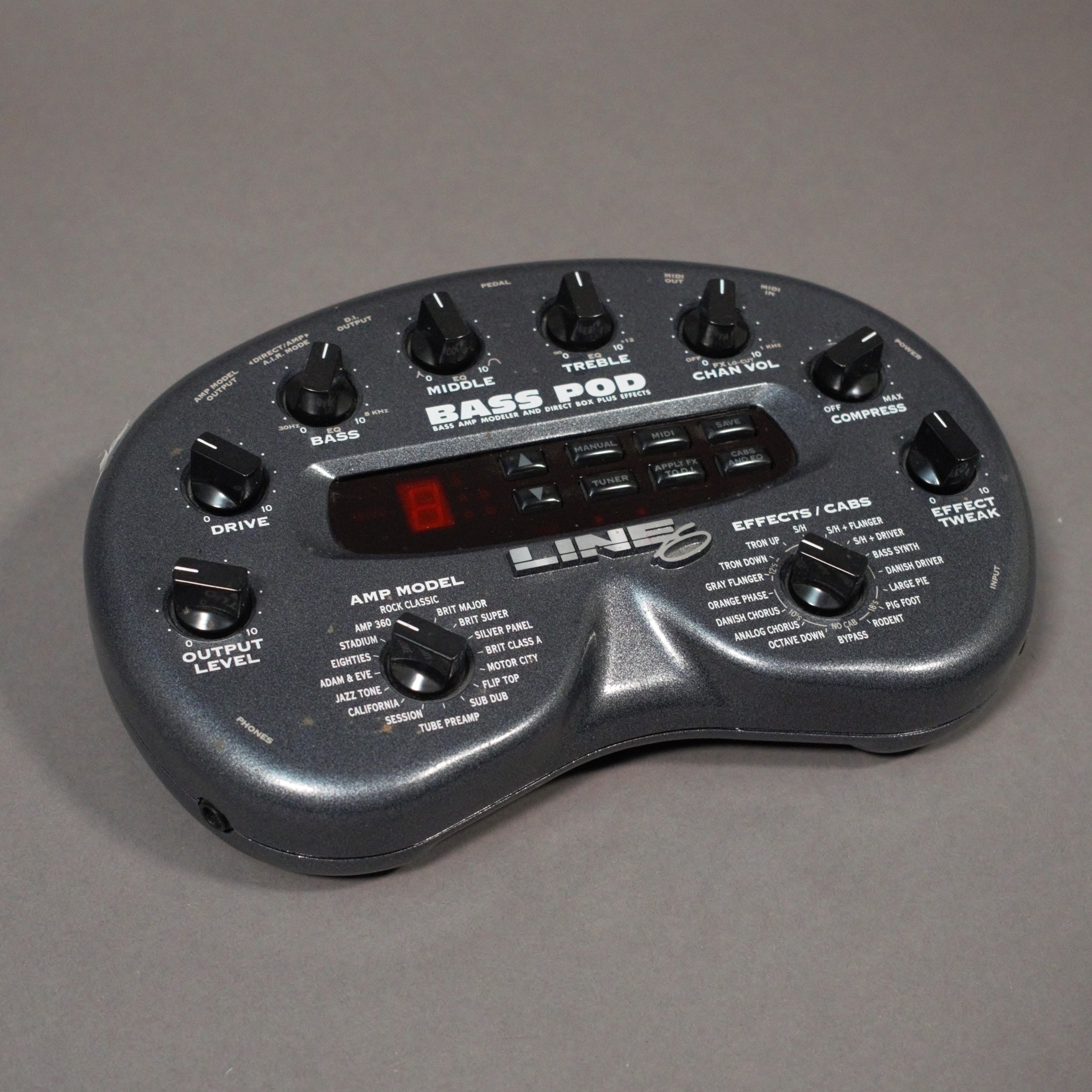 Used Line 6 Bass Pod bass amplifier modeler and multi-effects unit in good condition, with power supply.