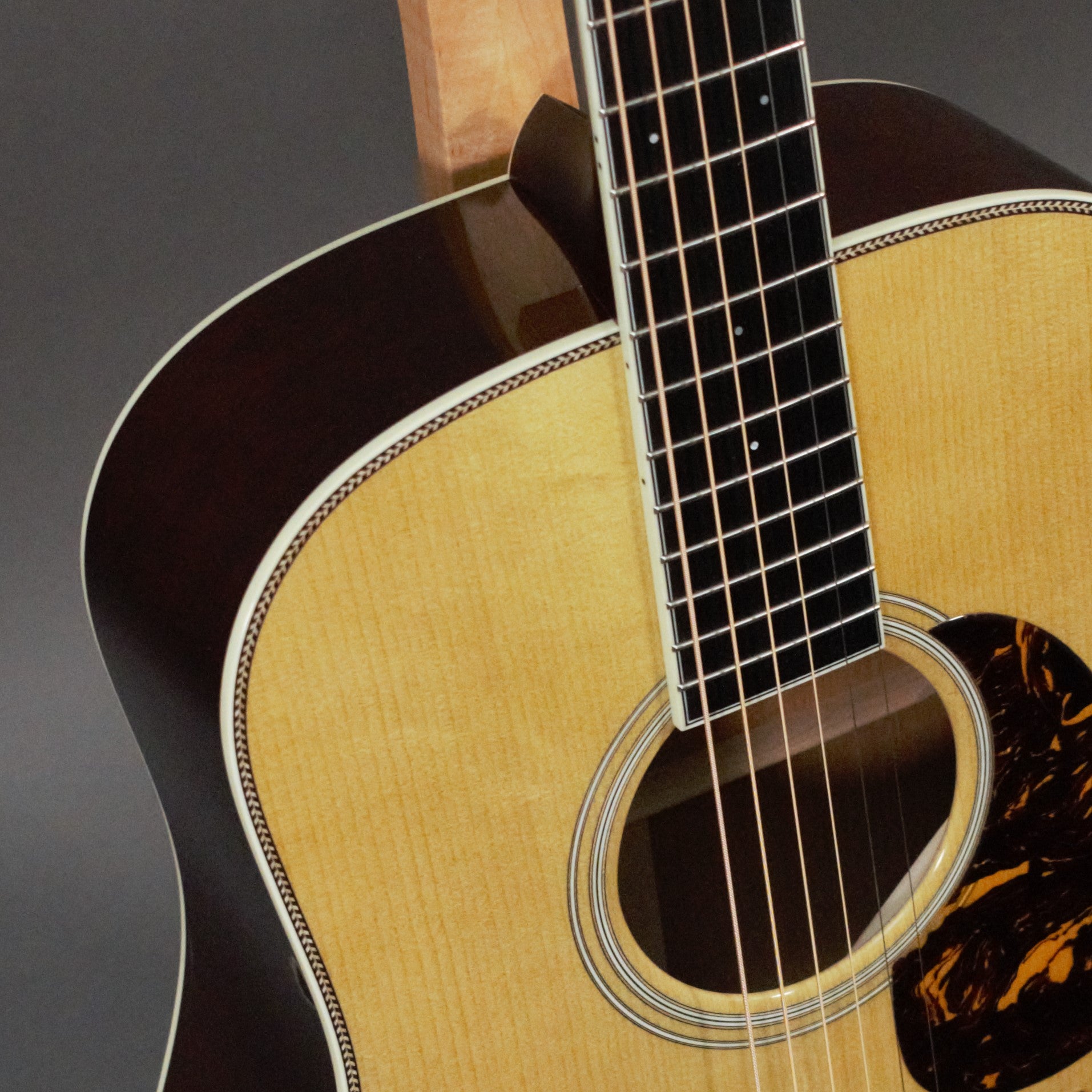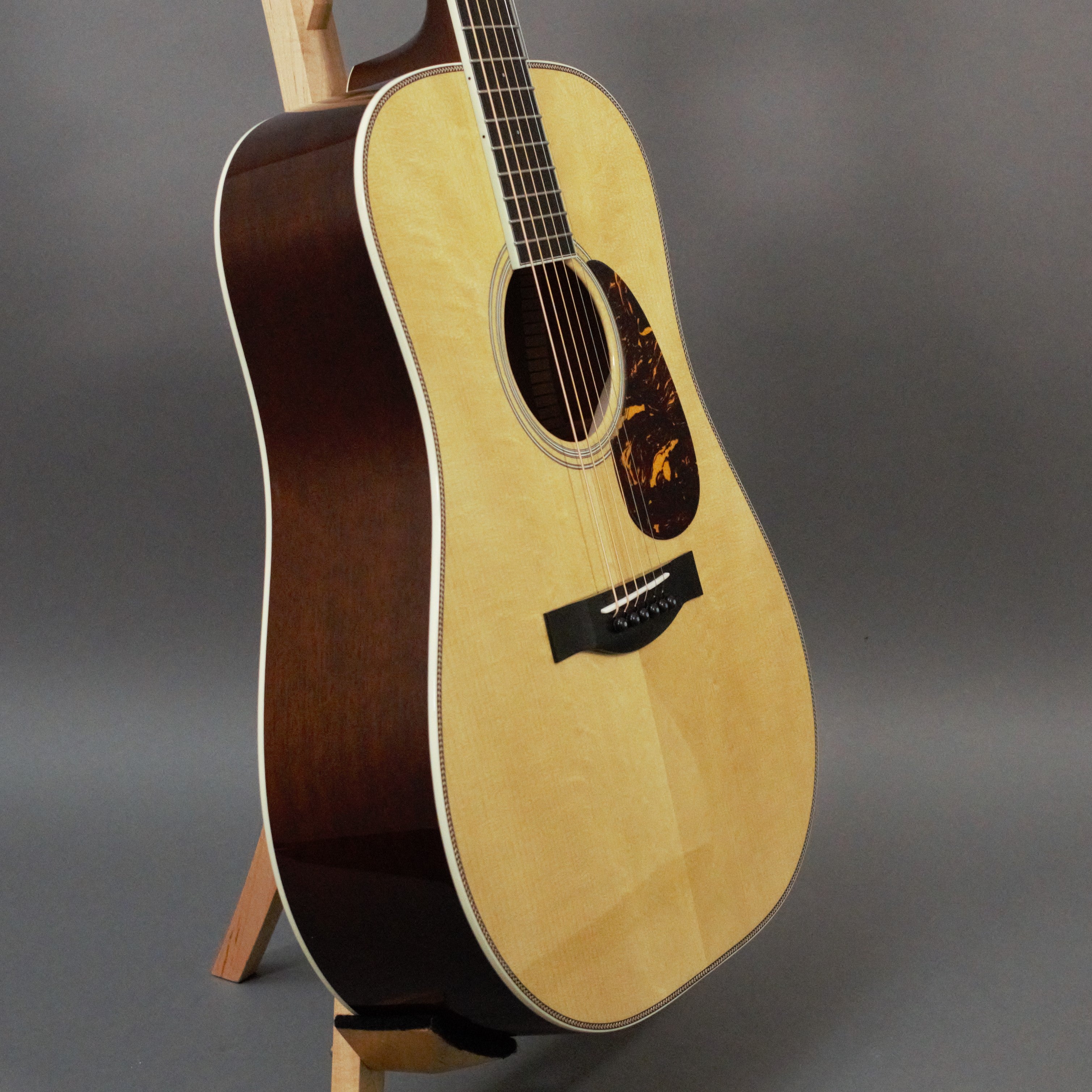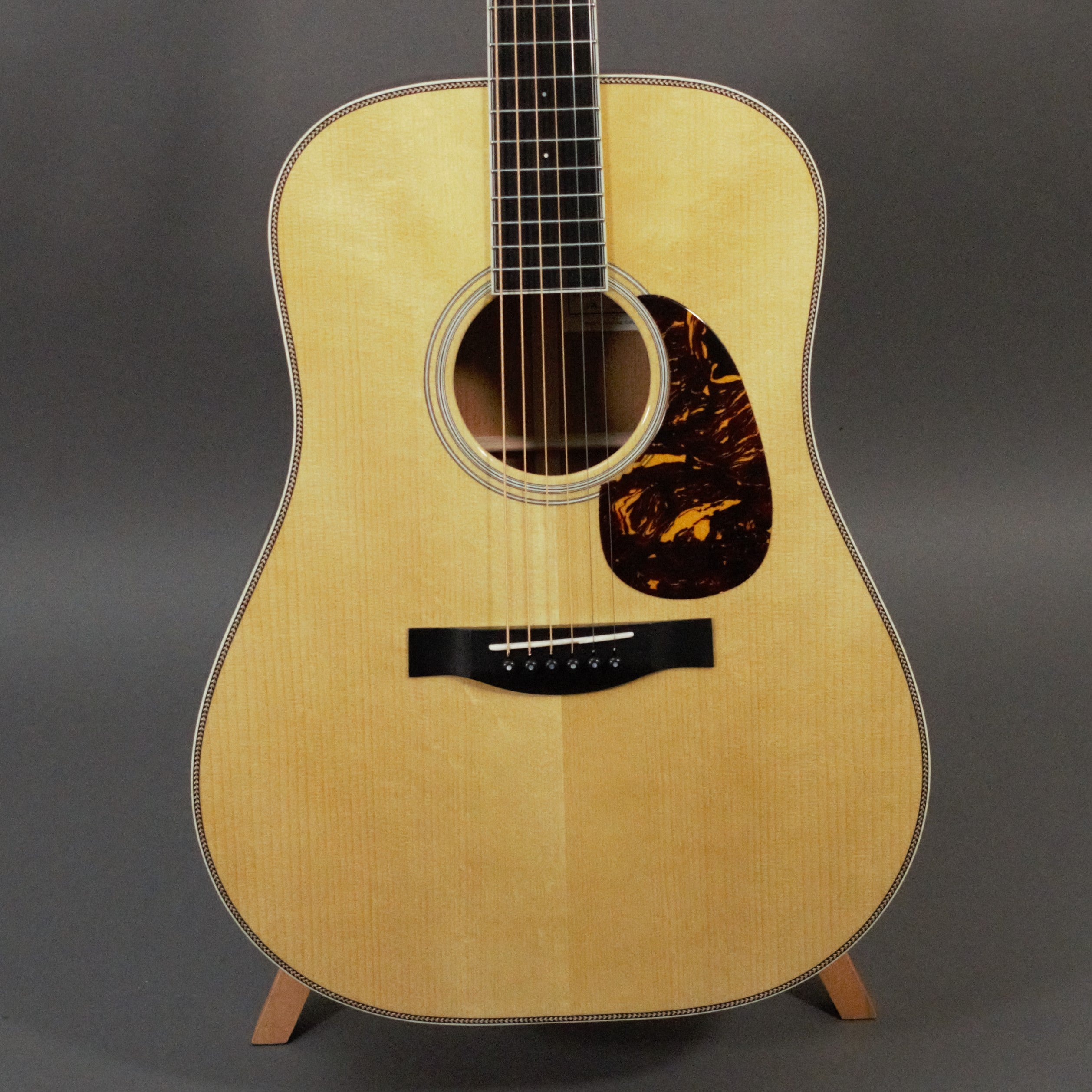 To achieve the characteristic EQ and tone of the legendary Doc Watson, aka ‘the Vintage Artist,’ this instrument features an advanced, scalloped X-bracing for powerful bass, complemented by the clear tone and definition of master grade Mahogany.