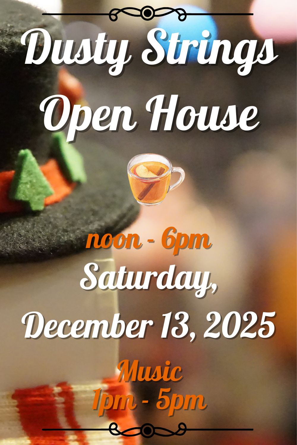 We invite you to another Dusty Strings Open House! As our way of saying thanks for being part of the Dusty Strings family, we'd like to treat you to some home-made refreshments by Sue, Ray, family & friends; and some home-made music by our friends and teachers.